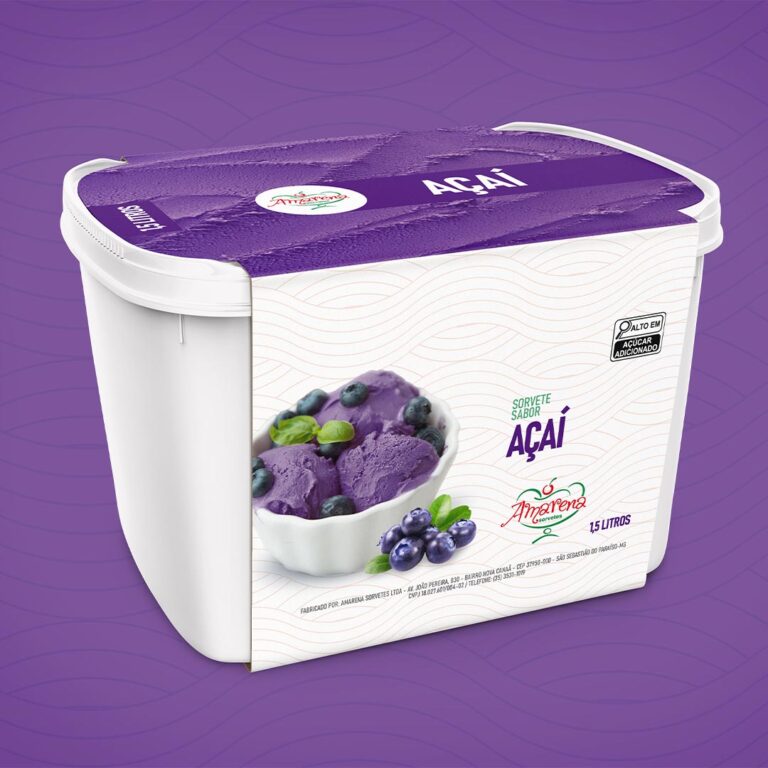 Água filtrada, Açúcar cristal, xarope de guaraná, polpa de açaí, corante artificial roxo e sólidos de origem láctea. Espessantes carboximetilcelulose sódica, estabilizante goma guar.